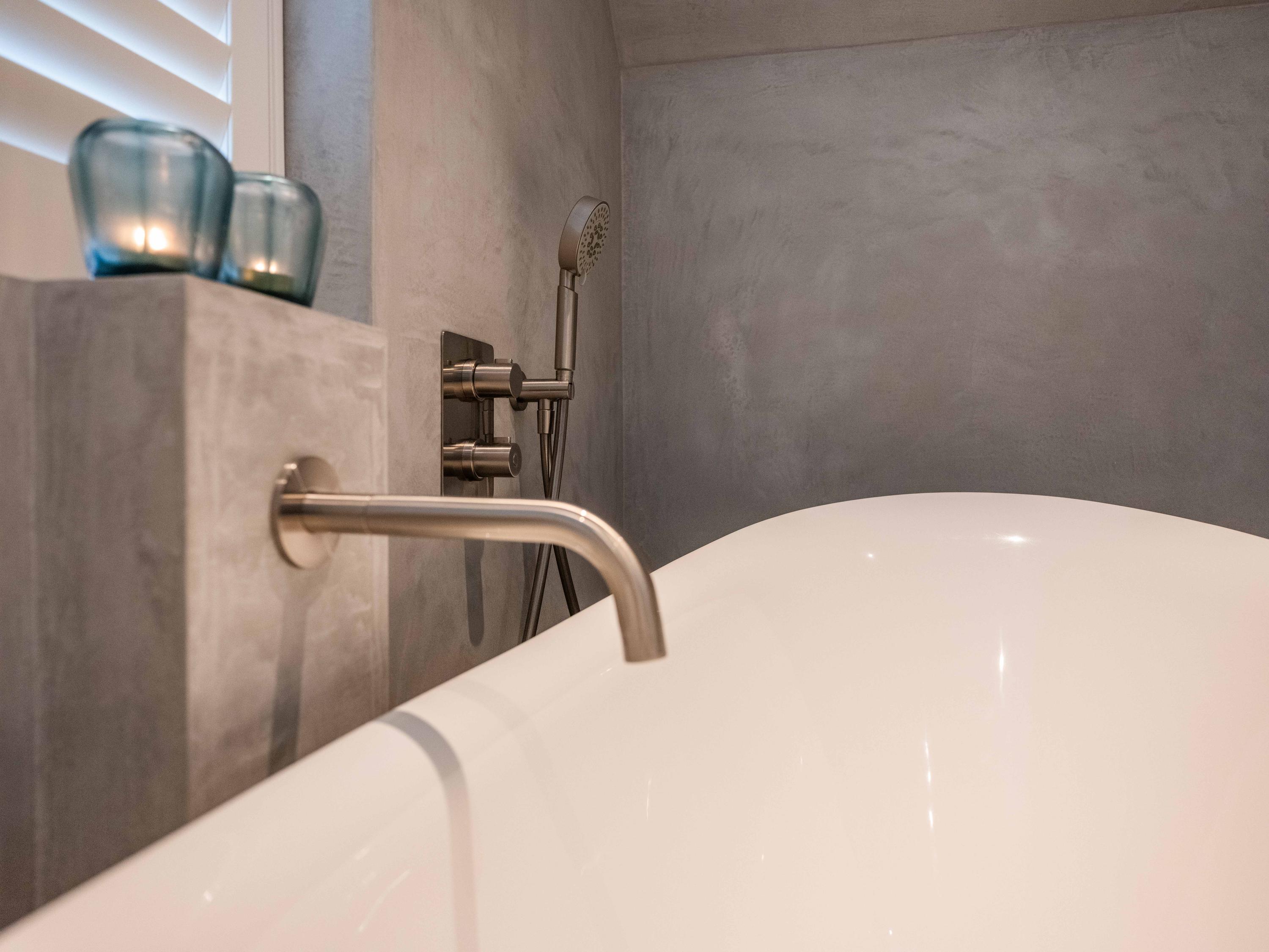 De open keuken is sfeervol ingericht en voorzien van een gezellige bar met zitplaatsen. Vanuit de keuken geniet je van een prachtig uitzicht over de tuin en is er directe verbinding met de woonkamer. Dankzij de open indeling en het overvloedige licht voelt alles ruim, fris en uitnodigend aan.