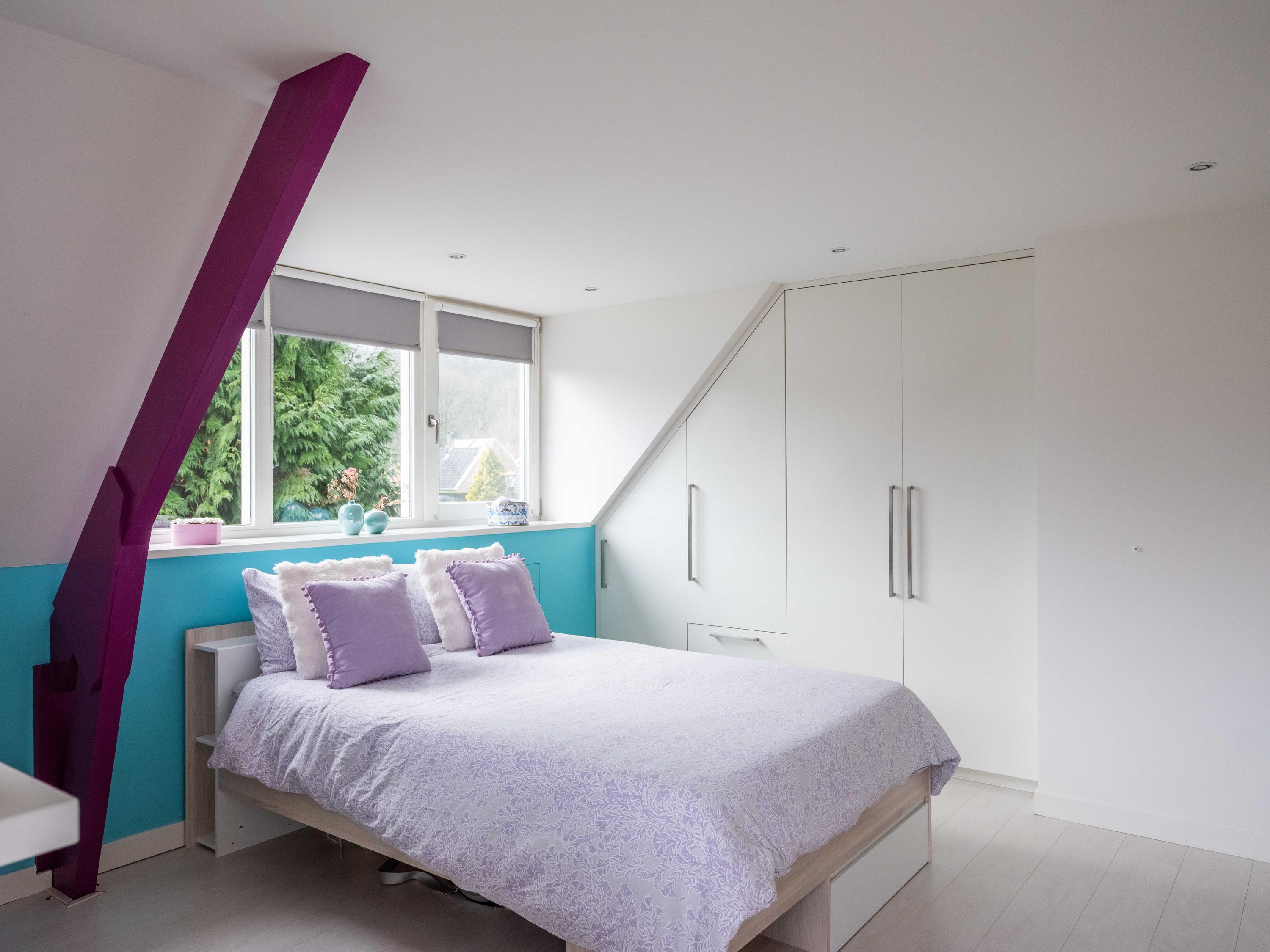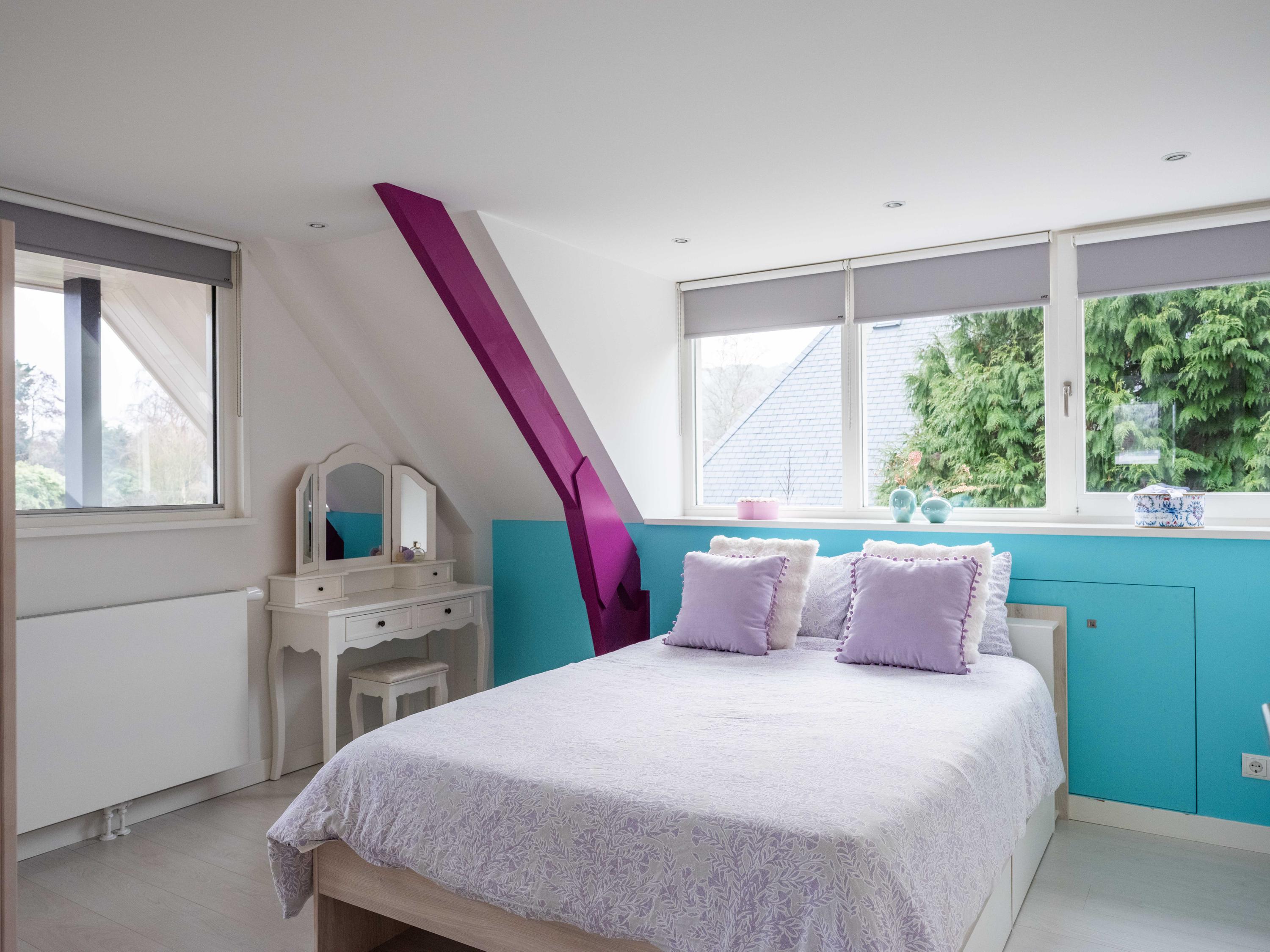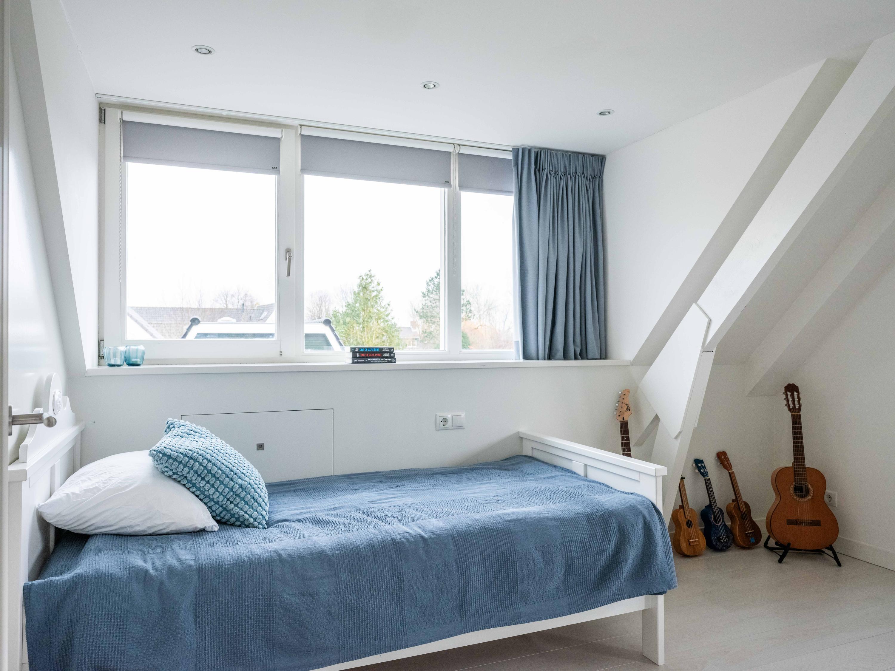 Vanuit de bijkeuken is er toegang tot nog een extra kamer, voorzien van airconditioning en een vliering. Deze kamer wordt nu gebruikt als kantoor, maar kan ook goed dienstdoen als slaapkamer of hobbyruimte. Op de vliering is extra bergruimte aanwezig. Ook hier geniet u van een prachtig uitzicht over de diepe tuin.