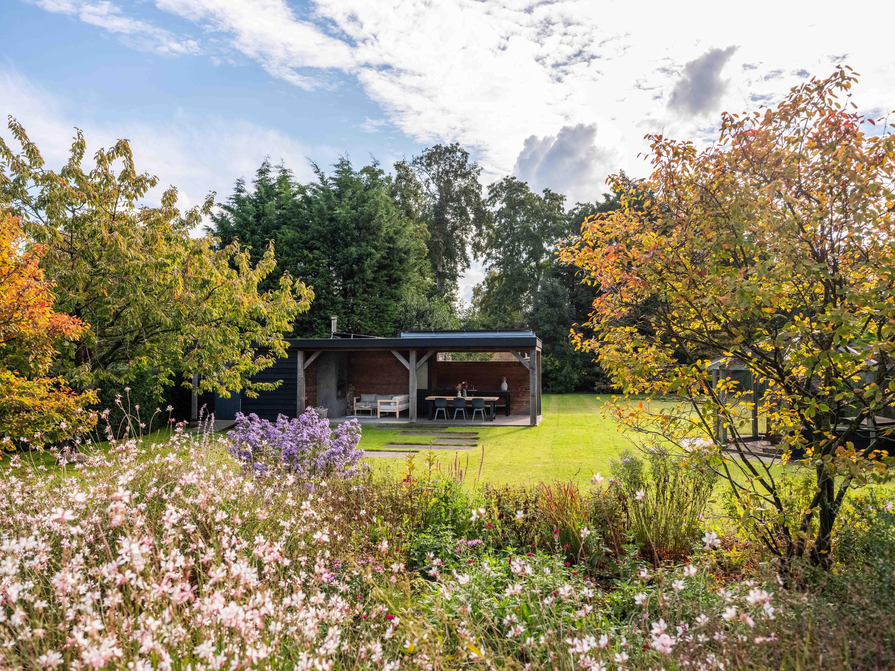 De achtertuin is erg ruim en verzorgd aangelegd. Er is een fijne veranda met houtkachel, zitruimte, veel bergruimte, elektra, verlichting en (koud) water. Ook bevindt zich in de tuin een royaal kippenhok dat blijft staan.