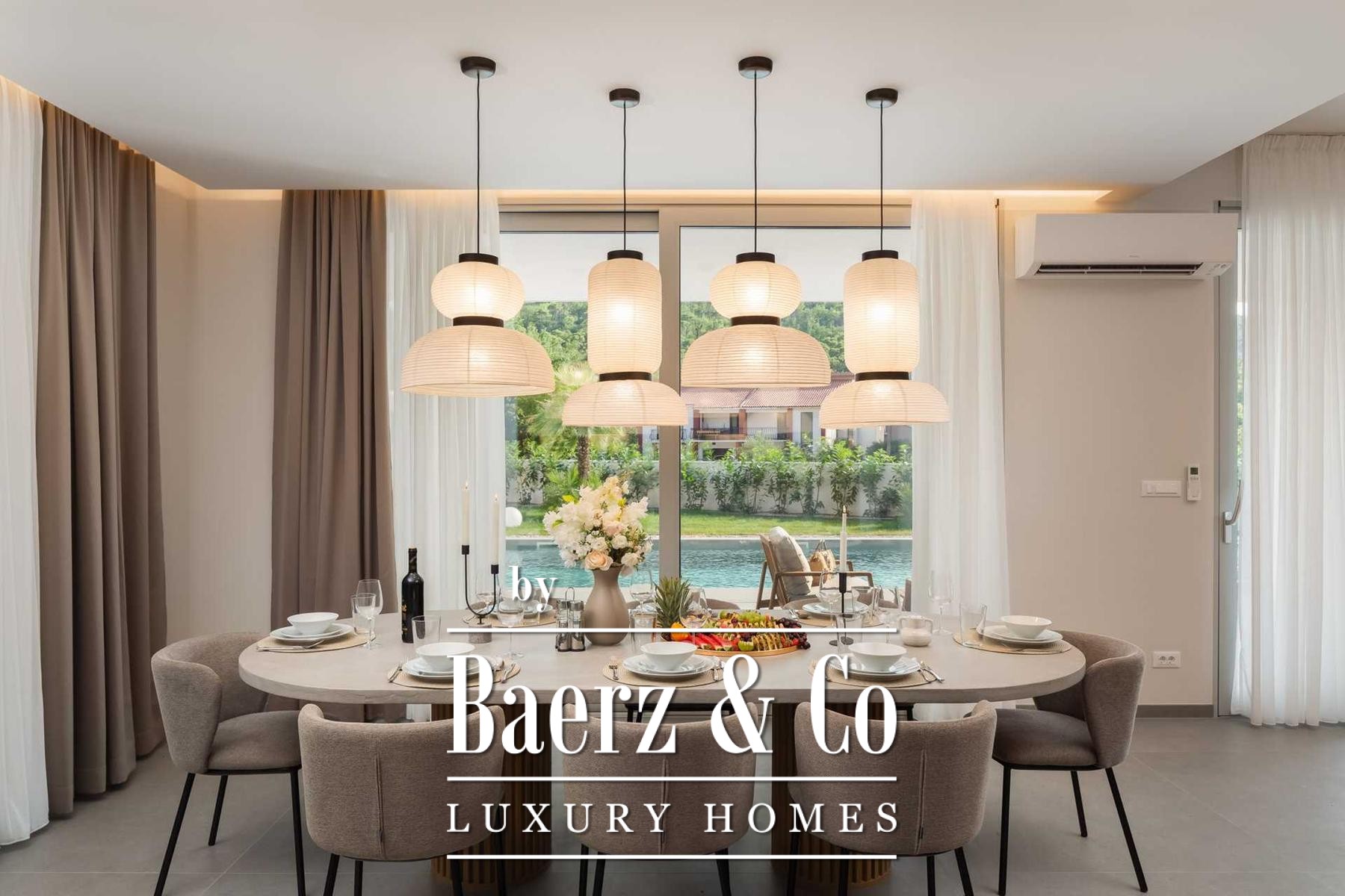 Op de eerste verdieping bieden vier slaapkamers elk een eigen en-suite badkamer, waardoor persoonlijke ruimte en rust gewaarborgd zijn. Designaccenten gaan moeiteloos samen met hoogwaardige materialen, wat zowel comfort als helderheid uitstraalt. Buiten is de tuin volledig omheind voor gemoedsrust en voorzien van een kinderspeelplaats, jeu-de-boulesbaan en privéparkeerplaats.