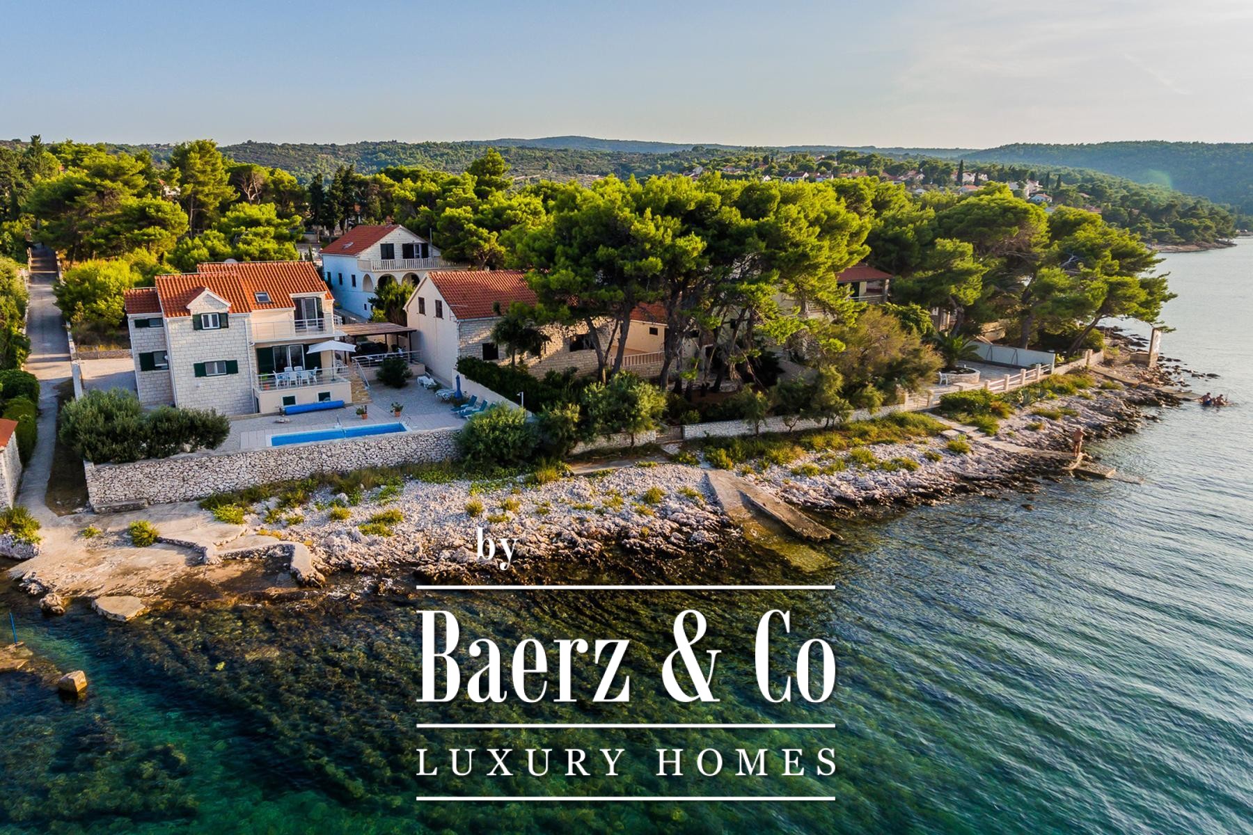 Villa Supetar met zwembad op de eerste rij aan zee is gelegen in het rustige dorp Splitska op Brač en biedt een zeldzame mix van privacy, directe toegang tot de Adriatische Zee en ingetogen architectonische helderheid. De villa staat op een perceel van 605 m² en beschikt over een netto woonoppervlak van 220 m², verdeeld over drie ruime verdiepingen.