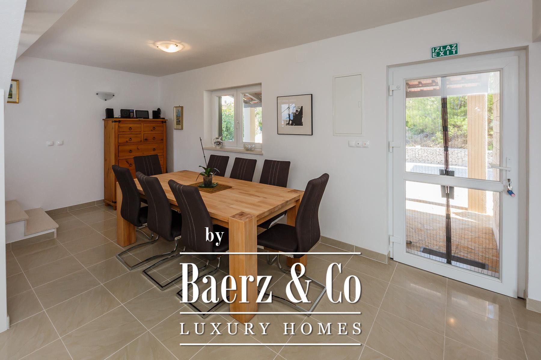 Aan de voorzijde opent het terras zich richting zee met een privézwembad en zonneterras, waardoor het uitzicht op de horizon en het kalme mediterrane ritme worden omlijst. Het pand is volledig gerenoveerd en elegant gemeubileerd, klaar om bewoners te verwelkomen die waarde hechten aan zowel aanwezigheid als rust. Deze villa te koop in Supetar is een ingetogen toevluchtsoord aan een van de meest authentieke kustlijnen van Kroatië en biedt zowel nabijheid als afzondering.