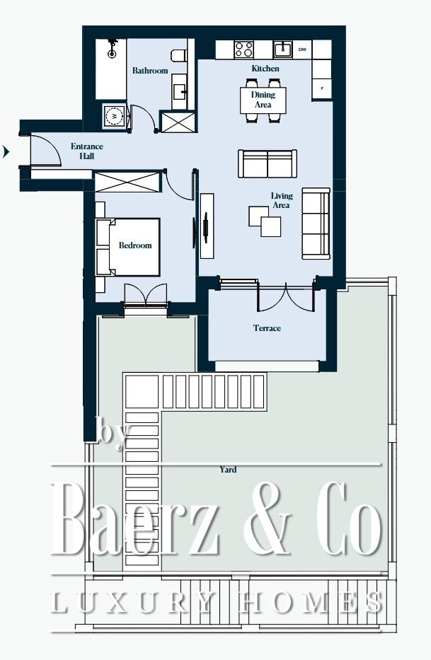 De indeling omvat een open woonkamer met geïntegreerde keuken en eetruimte, een slaapkamer, een badkamer en soepele verbindingen naar een buitenterras en mediterrane tuin met lavendel en olijf. Het interieur kenmerkt zich door ingetogen kleurstellingen, inbouwkasten tot aan het plafond en Nolte keukens met geïntegreerde apparatuur. Maatwerk meubilair, video-intercom bij de entree, vloerverwarming in de badkamer en een windvrij airconditioningsysteem onderstrepen het oog voor luxe en comfort.