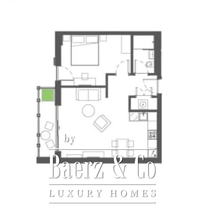 De indeling is ontworpen met rust en helderheid als uitgangspunt. Een hal leidt naar de lichte woonkamer, een moderne keuken met eetgedeelte, één slaapkamer en een stijlvol afgewerkte badkamer. Het appartement is volledig gemeubileerd en direct te betrekken of aantrekkelijk als hoogwaardige verhuurinvestering. Strakke lijnen en veel natuurlijk licht bepalen het hedendaagse karakter.