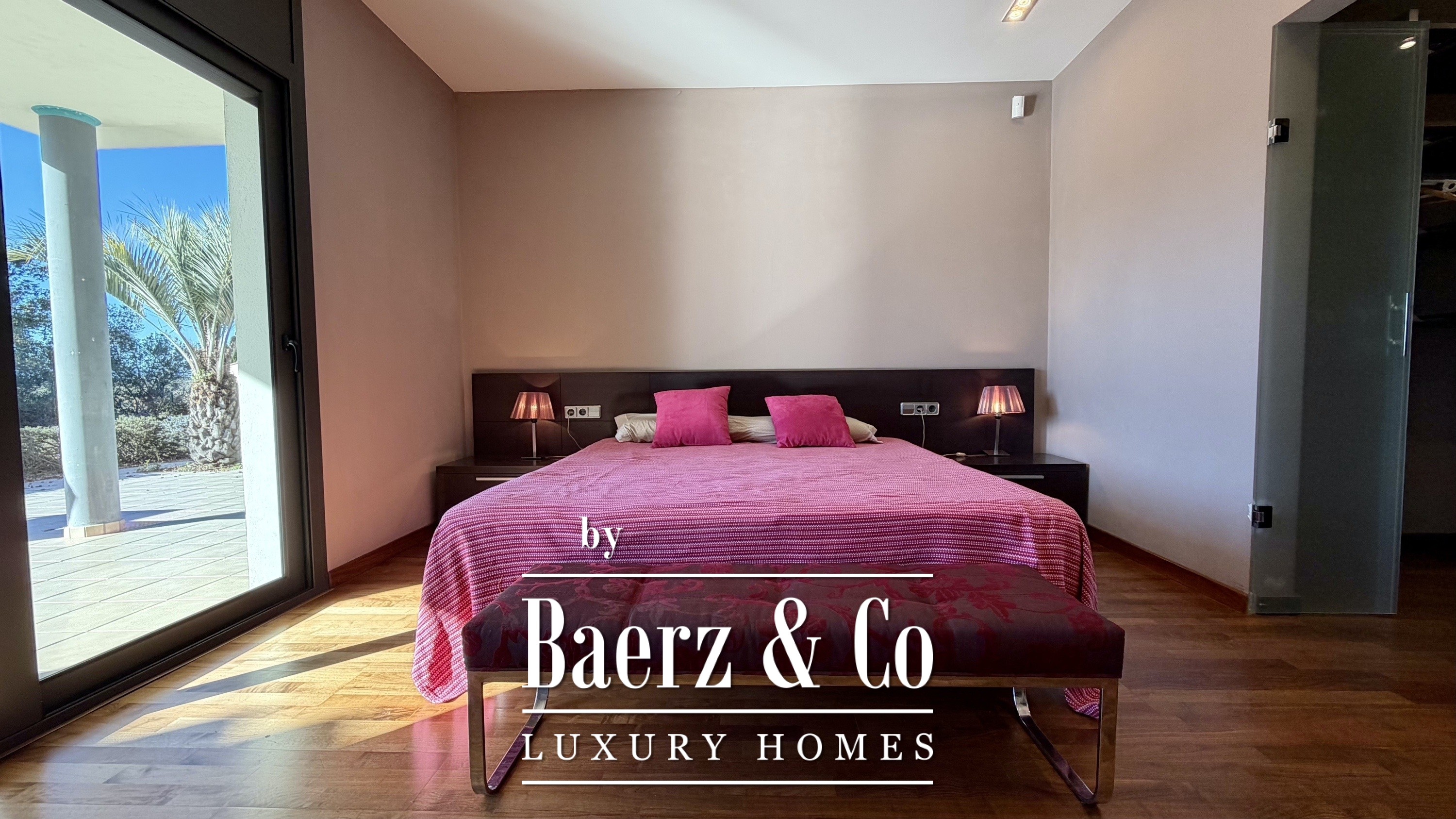 Op de bovenverdieping bevinden zich drie extra slaapkamers—twee met eigen badkamer—en een aparte badkamer, waardoor privacy voor familie en gasten is gewaarborgd. Alle kamers genieten van veel licht, ruimtelijkheid en rustgevend uitzicht, met zowel zee- als plattelandspanorama’s verspreid door de woning. Buiten draait het leven om de fraai aangelegde mediterrane tuin en het privézwembad, omlijst door terrassen en een paviljoen met kleedfaciliteiten.