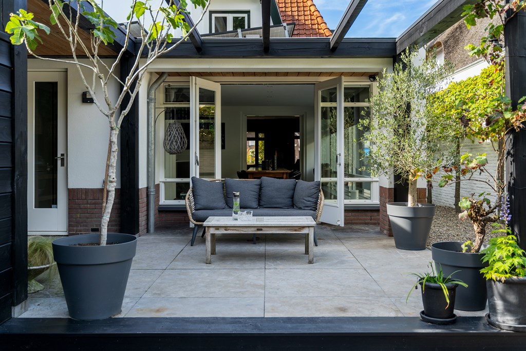 Direct aan de woning grenst een gezellige veranda, perfect voor lange zomeravonden met een eethoek en buitenkeuken. Dankzij de ligging op het zuidoosten geniet u hier van veel zon. De tuin is via de zijkant bereikbaar. Achterin bevindt zich een royale extra berging en bij de woning zelf bevindt zich nog een aangebouwde schuur welke ideaal is voor de stalling van uw fietsen, het tuingereedschap of als hobbyruimte.