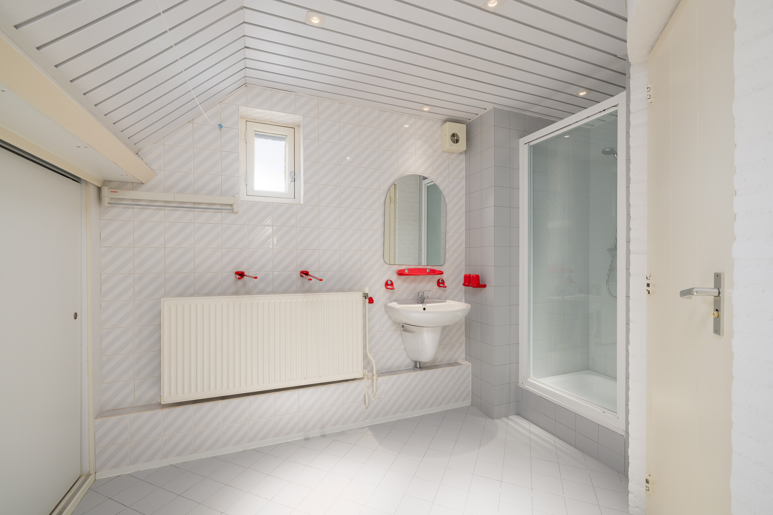 De badkamer aan de achterzijde beschikt over een kleine sauna. De tweede badkamer is uitgerust met een inloopdouche, aansluiting voor wasapparatuur en een apart toilet.