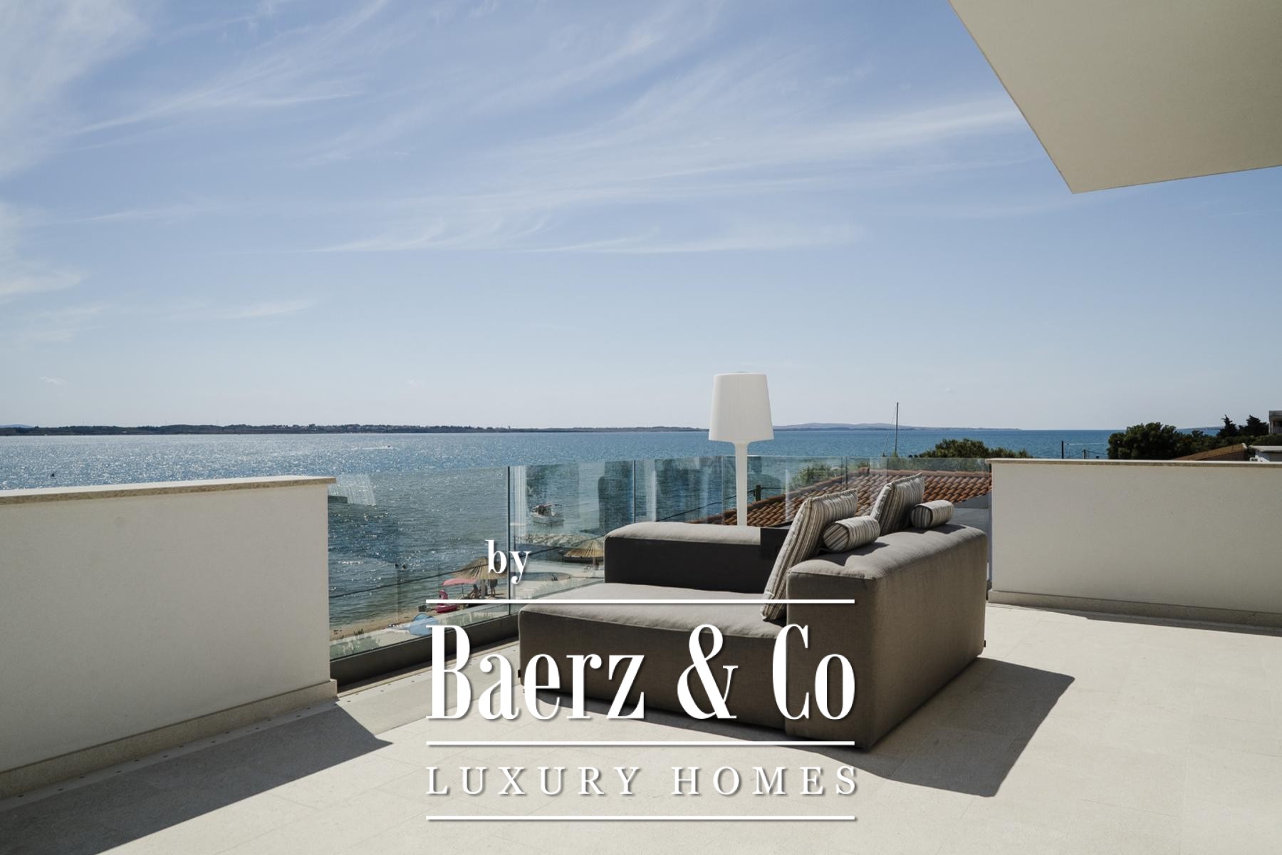 In totaal biedt het complex 370,65 m² woonoppervlakte op een fraai aangelegd perceel van 806 m², met vier slaapkamers en vier badkamers. Voorzieningen omvatten een sauna, jacuzzi op het dakterras, twee eigentijdse keukens, een home cinema, geïntegreerde audio- en beveiligingssystemen, automatische irrigatie, een gedeeld zwembad en buitendouches. De tuin is beplant met Mediterrane soorten en er zijn vier parkeerplaatsen beschikbaar. Deze exclusieve villa te koop in Vrsi is zowel een verfijnd privéverblijf als een investering van hoge kwaliteit voor veeleisende internationale kopers.