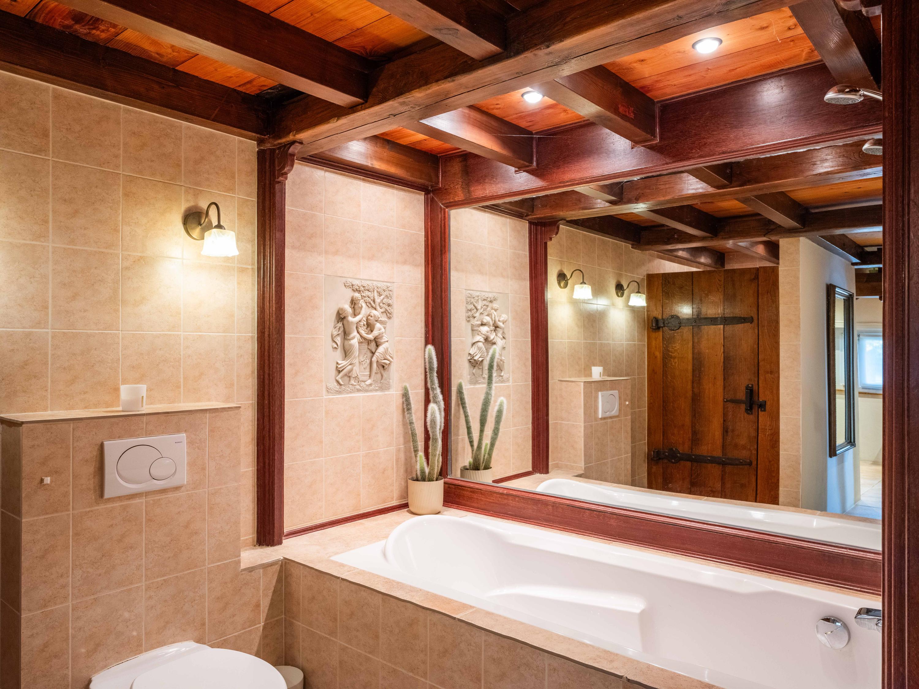 De woning heeft een warme, landelijke uitstraling met moderne gemakken zoals vloerverwarming, kunststof rieten dakbedekking en volledige isolatie.
