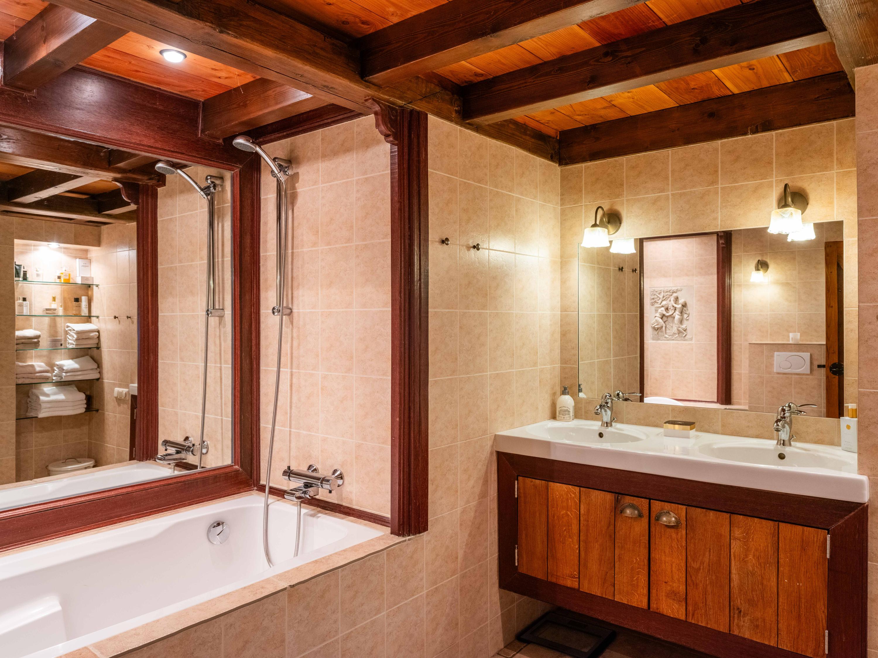 Aangrenzend aan de keuken bevindt zich de luxe badkamer, uitgerust met een ligbad, inloopdouche, toilet en dubbele wastafel. Tegenover de badkamer is een ruimte gelegen met kastruimte voor leg- en hangkleding. Daarnaast loopt de keuken aan de andere zijde over in de sfeervolle zitkamer, waar het vele licht en het uitzicht op het water direct opvallen. Deze ruimte is ruim en erg gezellig, mede door de houtkachel die voor warmte en sfeer zorgt. De gehele benedenverdieping is voorzien van comfortabele vloerverwarming.