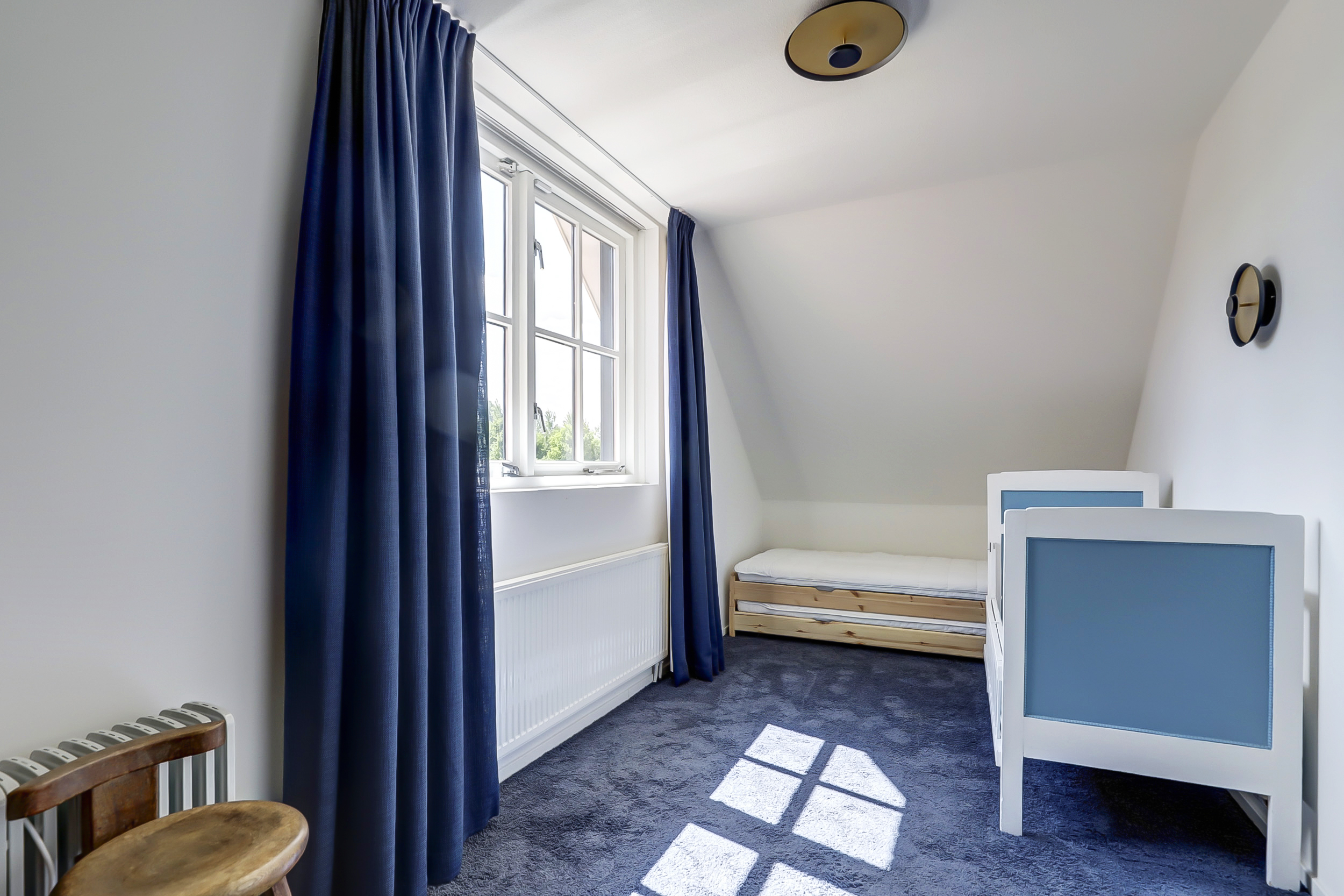 Boven een grote overloop met drie slaapkamers, een badkamer en een separate praktische bijkeuken, met keukenblokje, een kokendwaterkraan (Quooker) en de aansluitingen voor wasmachine en -droger.